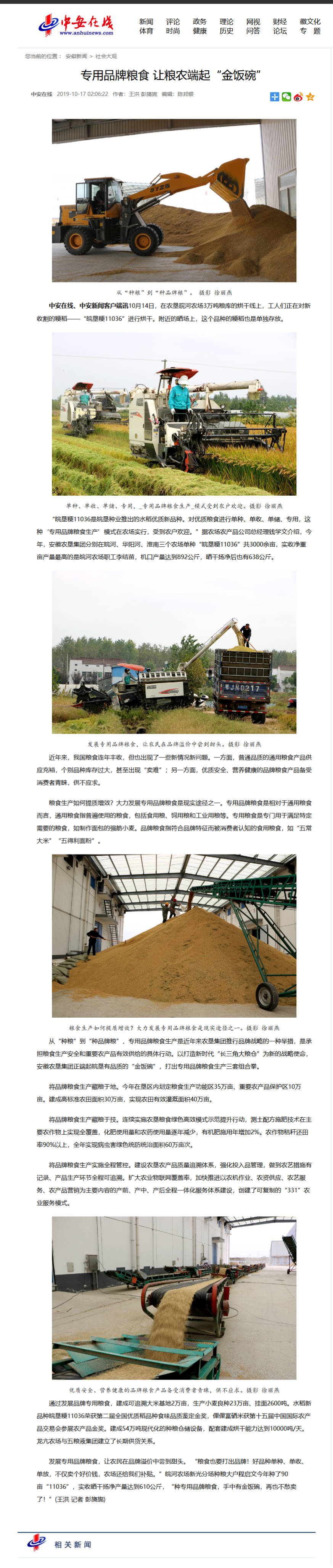 中安在線:專用品牌糧食生產(chǎn)讓糧農(nóng)端起“金飯碗”