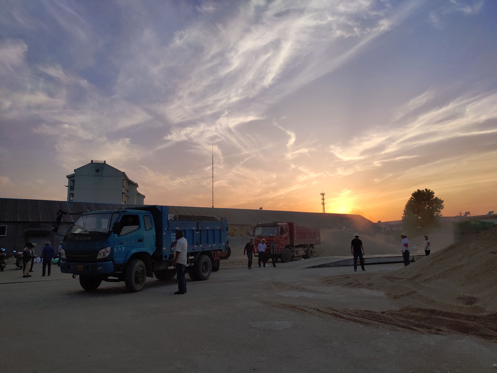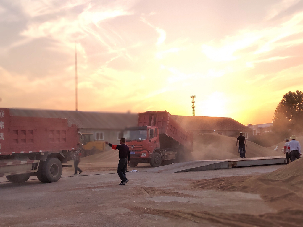 午收的主打色是金色,成群結隊的大型收割機從清晨工作到夕陽西下,收割的小麥直接運往農場各個農服收購站。運糧車從上稱、檢測、卸糧到出站不過十多分鐘的時間,迅速快捷而有序。(華陽河農場公司  包丹鳳)