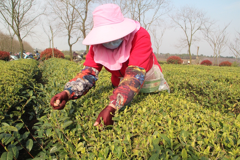 一半春天一半茶,春分時節采茶忙。3月19日,皖墾茶業集團十字鋪茶場公司統一經營的名優茶園基地,滿山是青翠的茶樹,微風吹拂下,陣陣清香撲鼻而來。茶葉已抽出鮮嫩的芽尖綠苞,近300名采茶工人正在采茶。只見他們雙手在春茶尖上快速地跳躍,手起葉落,上下翻飛,一派繁忙景象。戰“疫”決勝在關鍵期,皖墾茶業集團復工達產時不待我。