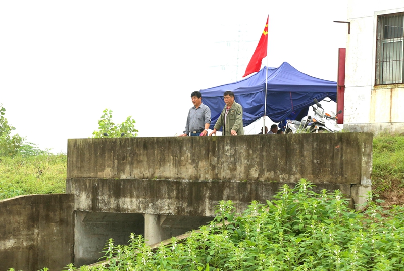 7月21日5時,壽縣防指下令關(guān)閉了堤壩九里涵閘,導(dǎo)致壽西截澇堤水位快速上漲,達(dá)到23.1米,超保證水位0.7米。為減輕壽西截澇堤防汛壓力,確保安全度汛,經(jīng)上級批準(zhǔn)決定7月21日12時前啟用壽西截澇堤泄洪閘進(jìn)行分洪。由于三分場防段的值班帳篷恰好駐扎在泄洪閘電機(jī)房旁邊,監(jiān)測泄洪閘水位的任務(wù)自然就落在了他的肩上。每天觀察登記水位變化、值班人員簽到、堤壩查險、協(xié)調(diào)物資、填寫值班日志,他一個也沒有落下。7月22日,李繼平帶領(lǐng)三分場值班人員,對壩坡雜草樹木進(jìn)行清理,陰雨天又加上連續(xù)幾天沒有休息好,一不留神,手中的鋸子割傷了他的左腿,鮮血順著小腿浸濕了褲管。他卻咬牙堅(jiān)持說,我都一把年紀(jì)了,這點(diǎn)小傷不礙事,何況截澇堤是我們壽西湖的生命堤,我必須守好這座閘。簡單包扎一下,打了破傷風(fēng)針后,他又出現(xiàn)在泄洪閘電機(jī)房旁,職工們都勸他回家休息,他卻笑著說,聽不到這轟隆隆的泄水聲我心里不踏實(shí),我一定要站好退休前的最后一班崗,不辱使命。