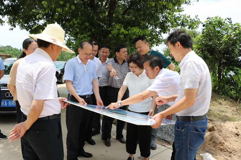 農墾集團黨委書記、董事長詹先豪和安慶市人民政府副市長王愛武(右三)共同督查同馬大堤防汛工作