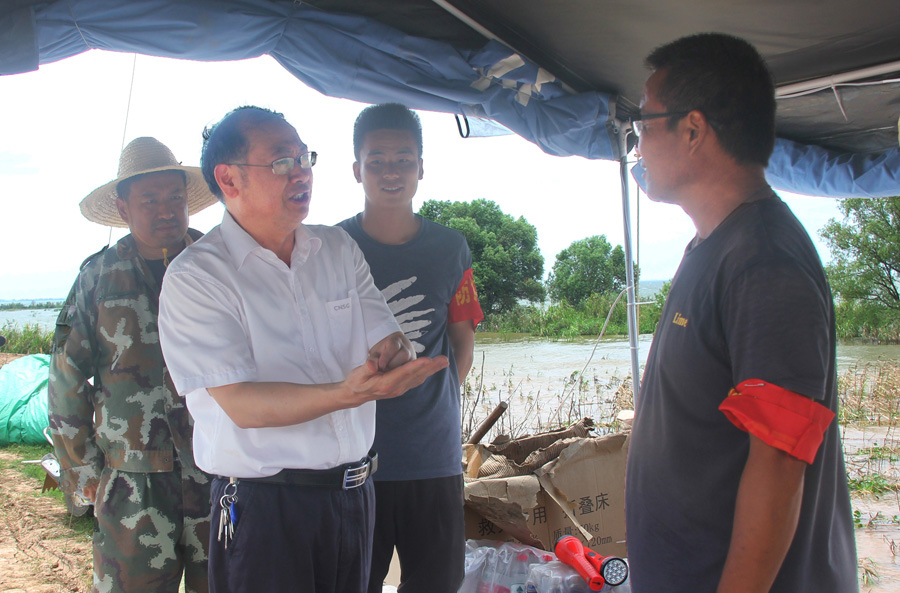 8月7日,省農墾集團公司黨委書記、董事長詹先豪率種植業部負責人先后深入華陽河和皖河沿江農場檢查指導防汛工作。
