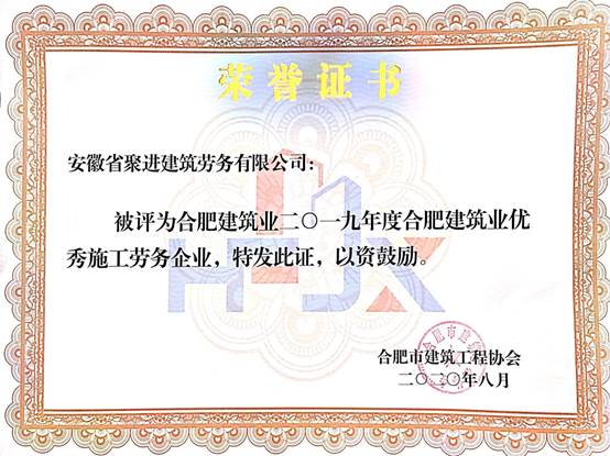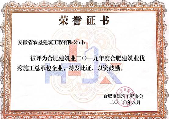 近日,合肥建筑業(yè)2019年度評優(yōu)評先及2019-2020年度合肥市建筑工程“琥珀杯”獎(市優(yōu)質(zhì)工程)評審工作已全面完成,農(nóng)墾建筑公司在此次表彰中喜獲“合肥建筑業(yè)2019年度優(yōu)秀施工總承包企業(yè)”。 這是公司連續(xù)第7年獲得“合肥優(yōu)秀施工總承包企業(yè)”稱號。同時,在此次評選中,墾建下屬的聚進勞務公司也連續(xù)第三年“合肥建筑業(yè)2019年度優(yōu)秀施工勞務企業(yè)”稱號。