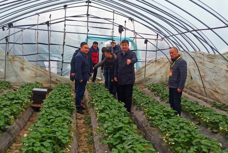 王良貴一行實地走訪了安徽農墾扶貧產業園,詳細了解草莓園生產、管理等情況,隨行專家對冬季大棚草莓溫濕度控制、花果管理、病蟲害防治等方面給予技術指導。