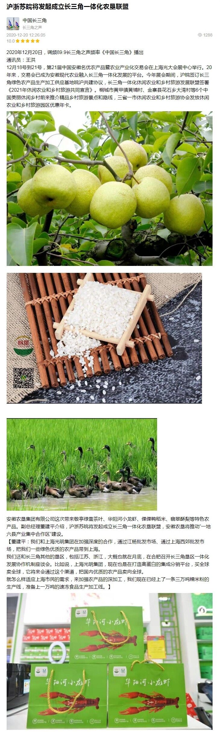 上海新聞廣播“長三角之聲”:滬浙蘇皖將發起成立長三角一體化農墾聯盟