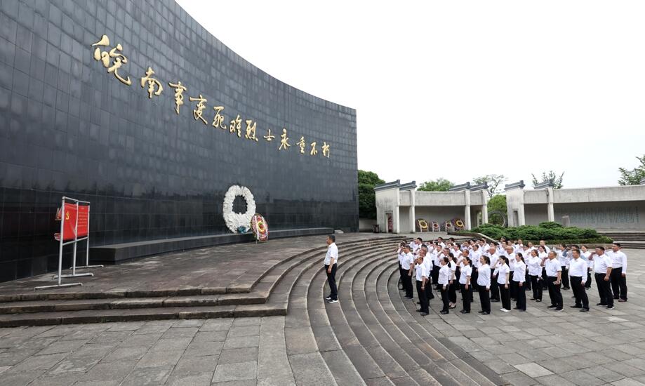 在涇縣縣委黨校,授課老師以《傳承紅色基因 弘揚新四軍精神》為主題,講授了新四軍的由來、新四軍的光輝歷史和新四軍精神。大家共同瞻仰了皖南事變烈士陵園、新四軍軍部舊址和王稼祥故居,深入學(xué)習(xí)了革命先烈的豐功偉績和歷史貢獻。在皖南事變烈士陵園前,王西享帶領(lǐng)大家向皖南事變烈士紀(jì)念碑敬獻了花籃,并在皖南事變烈士陵園廣場帶領(lǐng)大家重溫入黨誓詞。