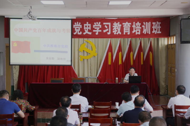 培訓班邀請了淮南市委黨校黨史黨建室,中共黨史專業(yè)副教授吳業(yè)勤老師作《中國共產(chǎn)黨百年成就與考驗》主題授課。他主要從中國共產(chǎn)黨的輝煌成就、百年歷史進程中遇到的各種風浪和考驗、主要啟示等三個方面,闡述了中國共產(chǎn)黨自成立之初,堅守“為中國人民謀幸福,為中華民族謀發(fā)展”的初心使命,團結(jié)帶領(lǐng)全國各族人民,堅持和發(fā)展中國特色社會主義,取得的一系列的偉大成就。
