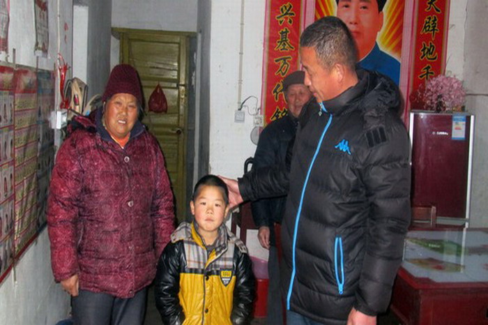 近日,華陽河農場一分場職工陸安慶來到貧困學生谷宇航的家中,對谷宇航的爺爺奶奶噓寒問暖。