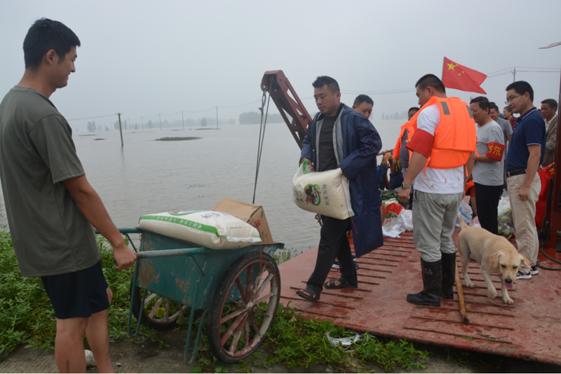 蓄洪后,阜濛分場的莊臺被洪水包圍成一個個孤島,道路阻斷,生活不便,只能依靠防汛船運送生活物資。青年郭偉承擔著每天跟隨防汛船為莊臺群眾搬運物資,在農場最北面莊臺駐點值班。小伙子細心周到,任勞任怨,職工群眾為他點贊。