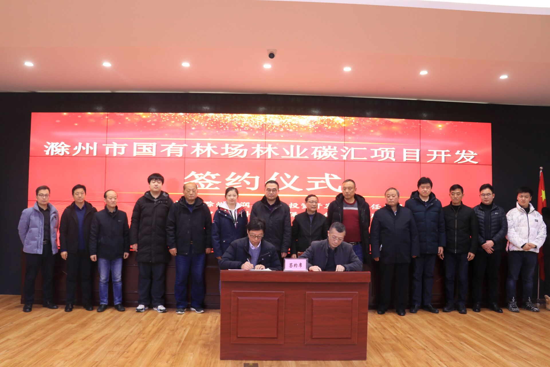 會上,滁州市潤森林業投資開發有限責任公司(滁州市政府林業投資平臺公司)與中國林科院生態保護與修復研究所進行了簽約。協議約定,滁州市國有林場林業碳匯開發項目以滁州市約130萬畝國有森林(含白米山農場10萬畝林地)為對象,重點研判林業碳匯的開發條件與趨勢,測算基線碳匯量與項目碳匯量并完成審定與核證,系統開發林業碳匯項目。