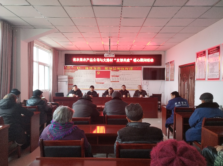 “今年我們大路村集體純收入突破50萬元,經村委會研究,給予困難黨員、退伍軍人和困難群眾發放慰問金”大路村黨支部書記在1月26日農產品公司總部黨支部與大路村黨支部共建總結會上自豪地說。