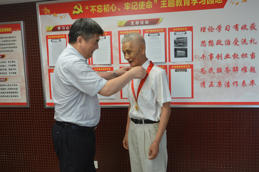 6月17日上午,集團公司黨委副書記、總經理張其廣和黨委副書記王良貴為4名老黨員頒發了“光榮在黨50周年”紀念章。