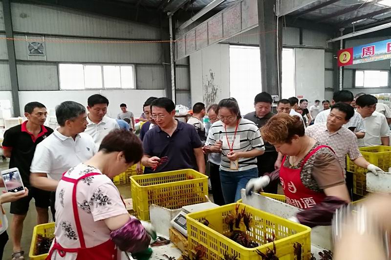 考察團一行實地參觀了湖北交投萊克現代農業科技有限公司及種苗繁育基地、潛江小龍蝦交易市場、運糧湖農場稻蝦種養現場。隨后,在運糧湖農場舉行稻蝦種養經驗交流座談會。考察團成員結合各場實際情況,對遇到或可能出現的有關問題,與湖北農墾及運糧湖農場領導專家進行交流探討,進一步加深了對稻蝦種養模式、技術、成效的認識,感受到了小龍蝦大產業的活力,增強了發展稻蝦產業的信心。