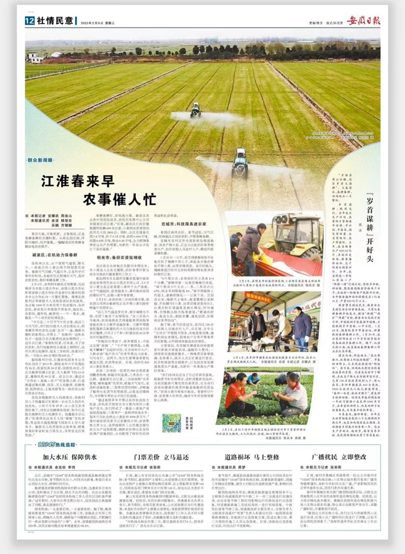 《安徽日報》刊發潘村湖農場公司春管圖文稿件