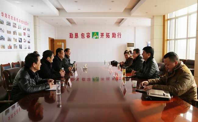 1228,九成監獄管理分局黨委書記袁穎、局長朱守武一行到華陽河農場考察交流,場領導謝廣和、王洪、倪建忠、吳偉陪同。