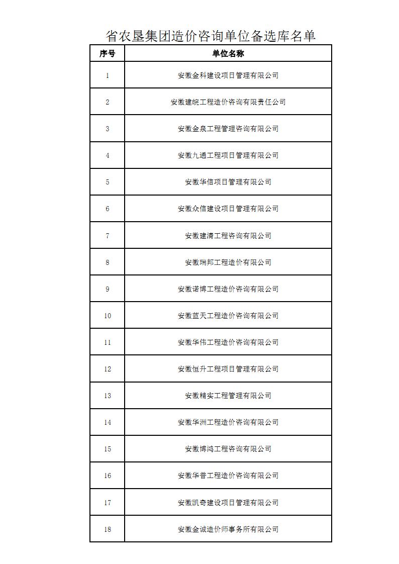 省農(nóng)墾集團關(guān)于公布造價咨詢單位備選庫名單的公告