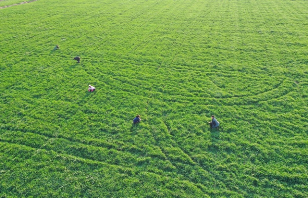 人勤春來早,田管正當時。農墾集團今年春耕生產更有“科技范”。進入雨水時節,農墾集團下屬各農場公司近百名農技人員奔赴地頭深入田間調查苗情,開出田管“處方”,指導農戶因苗因墑,分類田管,科學施肥,促弱轉壯,清溝瀝水,減輕漬害,對癥防治病蟲草害,做好農資農技農機服務保障。目前,墾區 76.1萬畝在地小麥長勢較好。