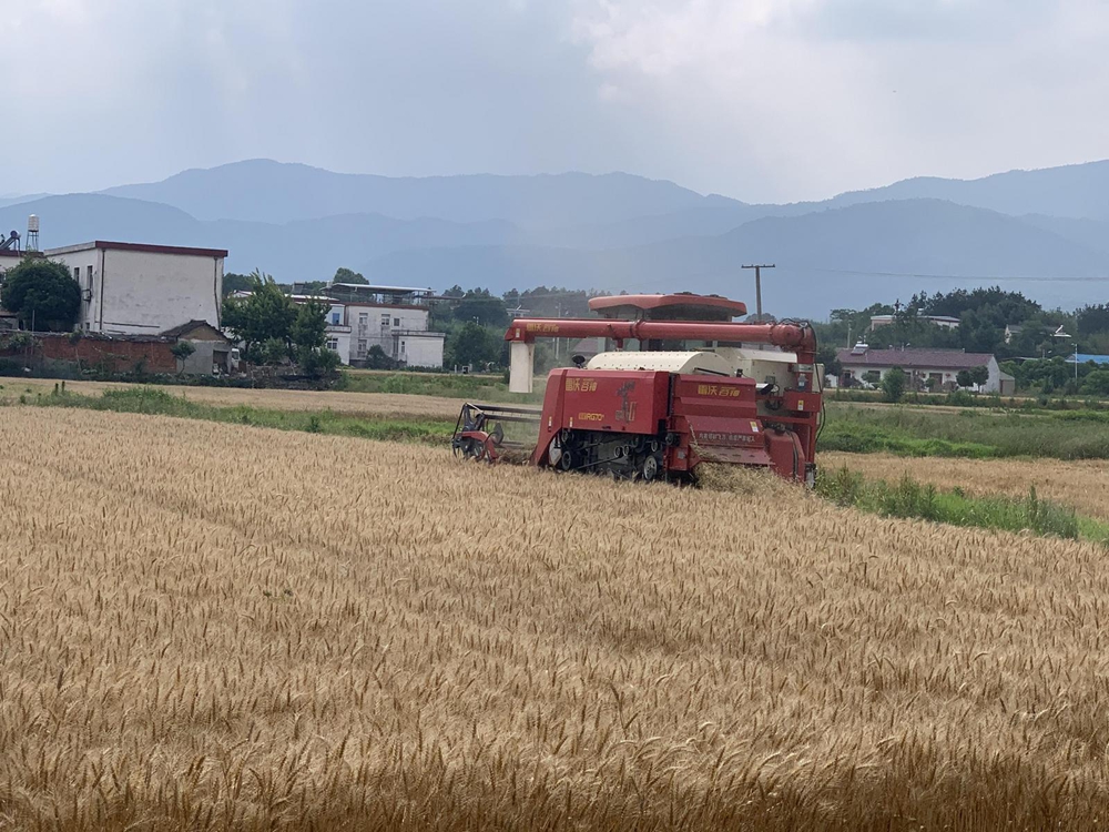 金色六月,麥浪飄香。在安徽農墾墾豐農業科技有限公司(安徽農墾與長豐縣鄉村振興投資公司合作成立的企業)經營的大路村小麥田里,多臺收割機正在忙碌而有序地作業,隨著飽滿的麥粒從收割機噴涌而出,卸入運糧車,不到半個小時,眼前一塊30畝麥田就實現顆粒歸倉。