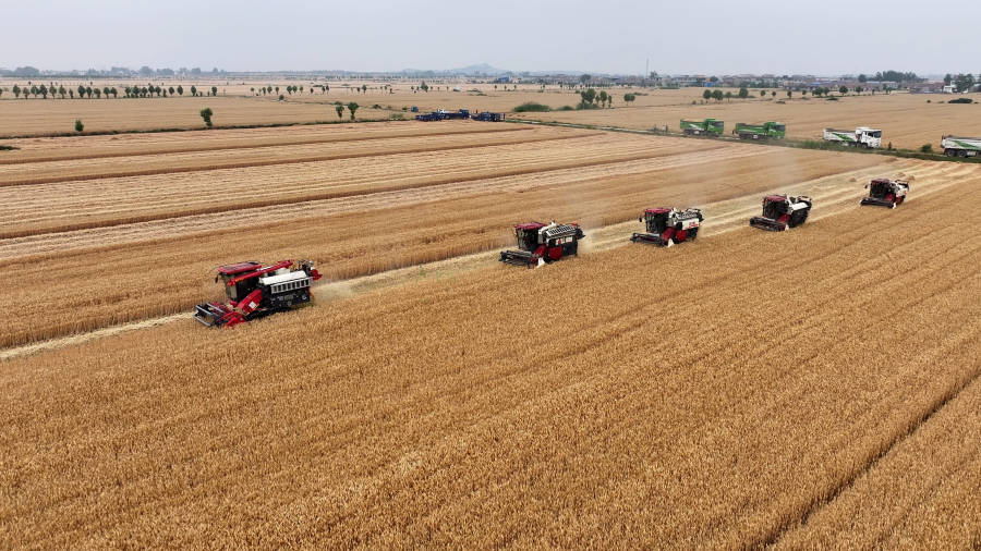 今年3月,安徽省提出加快建設“千億斤江淮糧倉”的發展目標,到2035年全省糧食產能穩定在1000億斤以上。安徽農墾集團積極發揮“國家隊”示范帶動作用,與安徽省15個產糧大縣緊密合作,以土地流轉、托管等方式開展社會化服務,讓農墾、村集體、農戶形成穩定的利益聯結,助力110萬畝糧食生產,落實全國農墾“兩大行動”。近日,筆者走進三個產糧大縣的“三夏”生產一線,感受在安徽農墾的帶動下,地方糧食生產煥發出的新面貌。