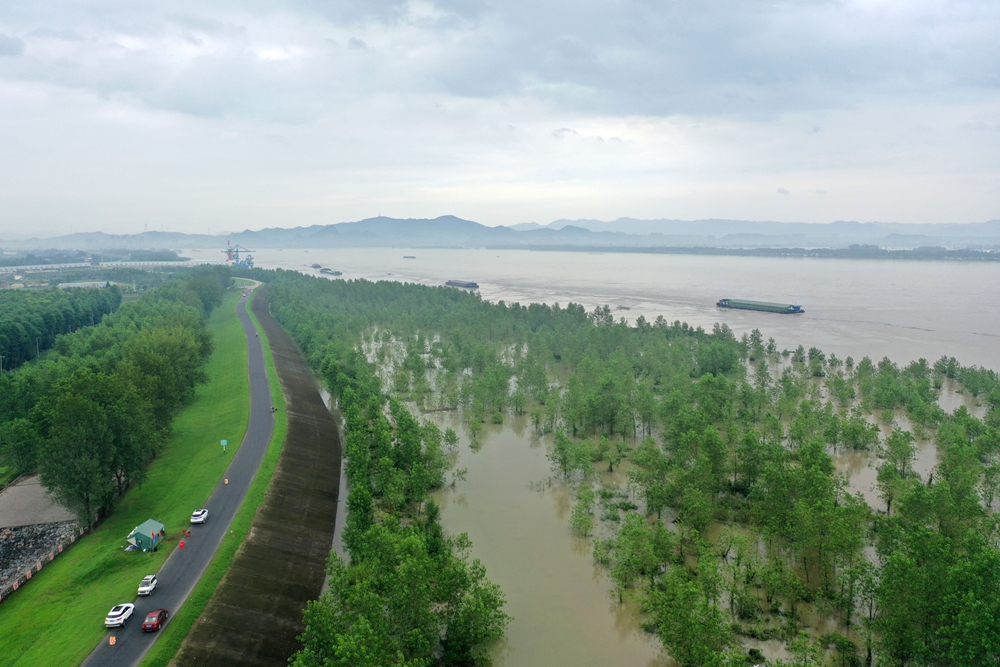 華陽河農場公司長江大堤46號防汛責任段。(無人機照片)李龍 攝