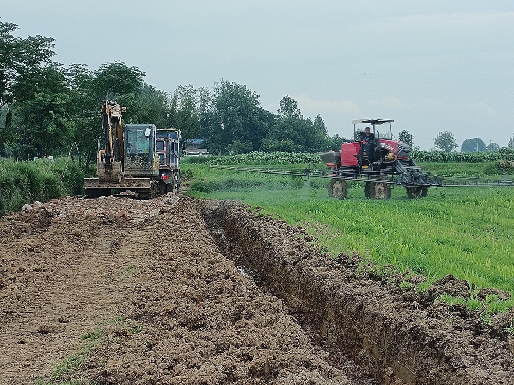 7月6日,固鎮(zhèn)安省農(nóng)業(yè)服務(wù)有限公司組織機械、人工,采取開溝放水排澇降漬。褚紹尉 攝