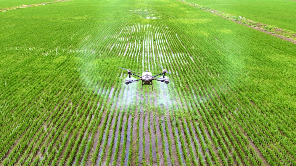 7月7日,大壙圩農(nóng)場公司圩內(nèi)開展植保作業(yè)場景。沈鵬翔 攝