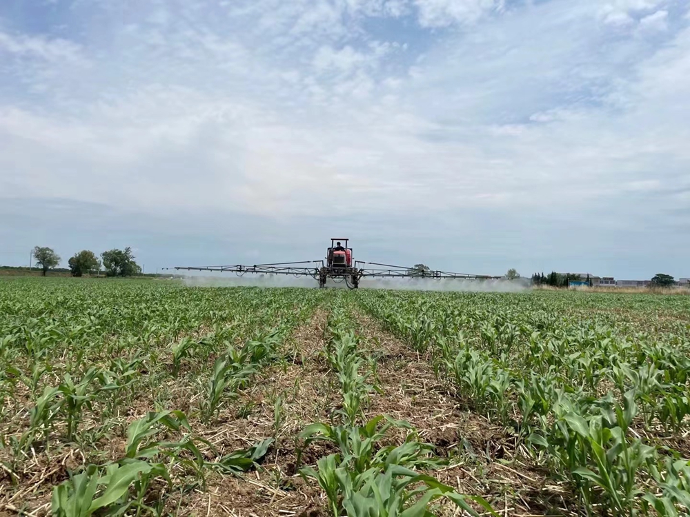 農(nóng)服懷遠公司在降雨前,及時開展了清溝瀝水工作,雨后及時排盡田間積水解決內(nèi)澇,此外,公司搶抓晴好天氣間隙,本著科學用藥、安全生產(chǎn)原則,適時開展病蟲草害防治及追肥工作,保障夏糧作物增產(chǎn)豐收。7月7日至8日,在農(nóng)服懷遠公司郎酒智慧農(nóng)場基地種植的4000畝高粱田間,農(nóng)機手正駕駛著大型植保機開展田間除草工作。