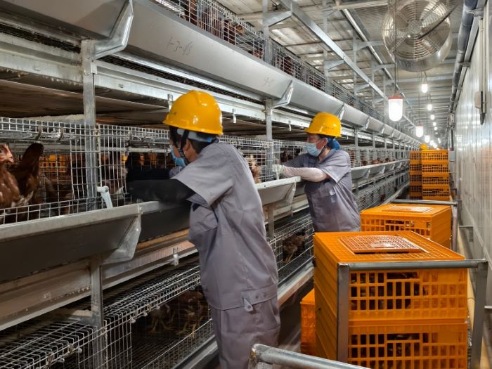 江南茶海禽業(yè)公司百萬羽蛋雞養(yǎng)殖項目是安徽農(nóng)墾融入長三角一體化發(fā)展的重要項目,蛋雞場采用國內(nèi)外領(lǐng)先設(shè)備,集籠架系統(tǒng)、喂料系統(tǒng)、飲水系統(tǒng)、通風(fēng)系統(tǒng)、照明系統(tǒng)、集蛋系統(tǒng)、出糞系統(tǒng)等七大系統(tǒng)于一體,實現(xiàn)生產(chǎn)管理的高度自動化與智能化,保障安全高產(chǎn)。(江南茶海禽業(yè)公司)