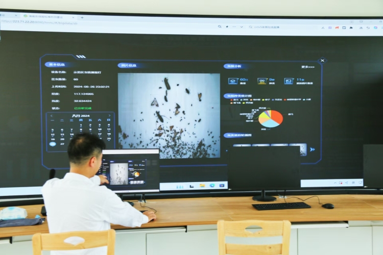 趙銳邊演示邊介紹,數(shù)字農(nóng)業(yè)綜合管理云平臺,最突出的表現(xiàn)是病蟲害治理。在智慧區(qū)田塊配備有高精度攝像頭,能夠24小時不間斷捕捉農(nóng)田蟲害影像,蟲情監(jiān)測燈設(shè)備能夠自動識別并分類各種害蟲,精確度達(dá)95%以上。實時的數(shù)據(jù)分析結(jié)果,通過物聯(lián)網(wǎng)技術(shù)即時上傳至云端,通過云平臺進(jìn)行統(tǒng)計分析處理,繪制出農(nóng)田蟲害分布圖,分析害蟲活動規(guī)律及發(fā)展趨勢,精確發(fā)布監(jiān)測預(yù)警,精準(zhǔn)定位蟲害區(qū)域,農(nóng)場公司農(nóng)科所根據(jù)分析結(jié)果,制定出針對性的病蟲害防治方案,使病蟲害防控工作變得精準(zhǔn)而高效。