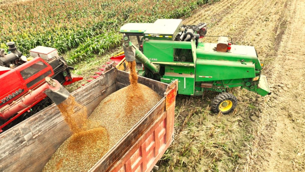 高粱垂紅穗,又到豐收時(shí)。10月9日,位于龍亢農(nóng)場(chǎng)公司農(nóng)業(yè)二場(chǎng)的高粱種植基地,收割機(jī)來(lái)回穿梭,田間地頭呈現(xiàn)出一派繁忙熱鬧的豐收景象。