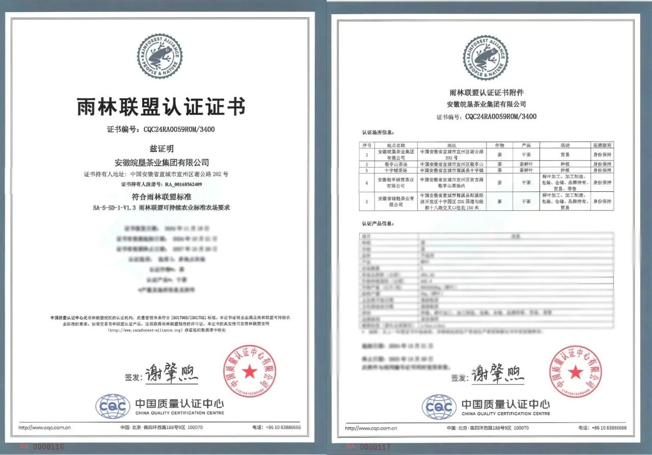 省內(nèi)首家持證國(guó)企!皖墾茶業(yè)集團(tuán)獲得雨林聯(lián)盟國(guó)際認(rèn)證