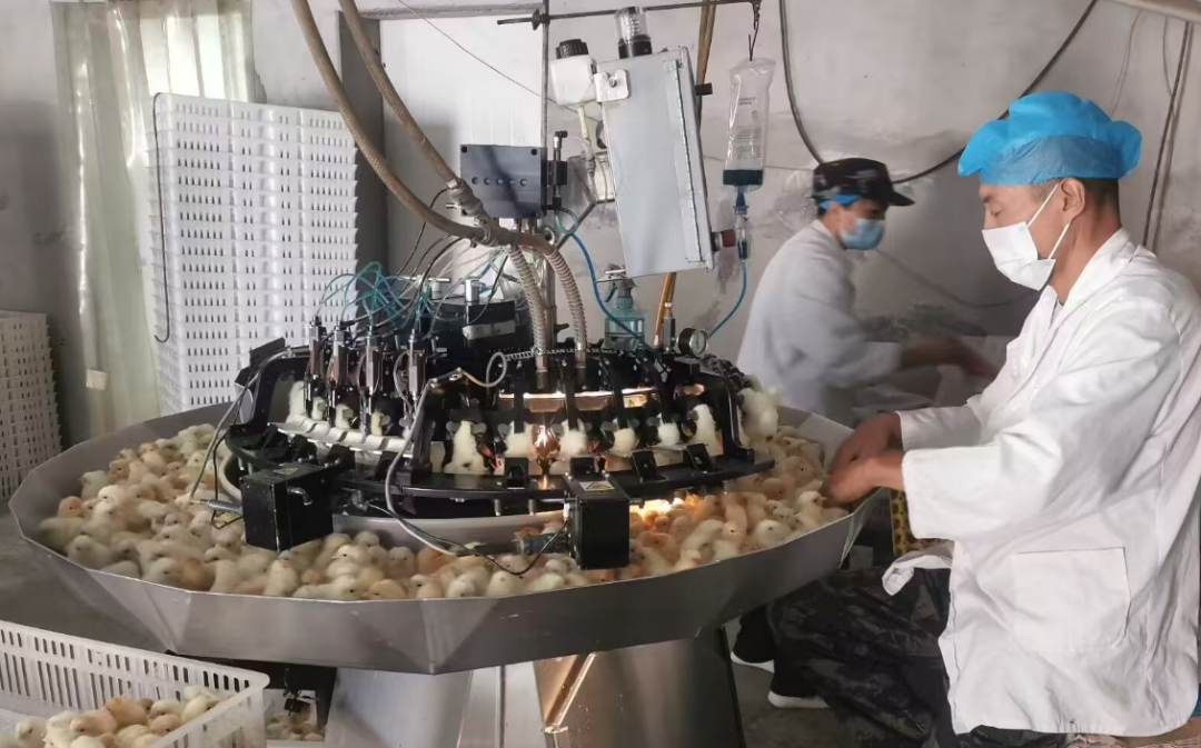 2月11日,安禽禽業(yè)公司孵化廳內(nèi),工人正緊張有序的挑選雞苗、注射疫苗、裝箱,這是今年春節(jié)后第一批發(fā)往江蘇泰州的京紅苗雞。