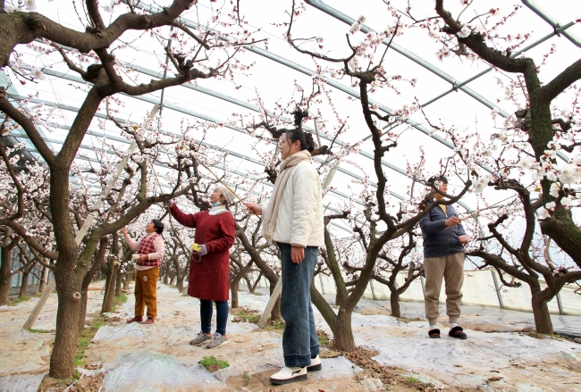 碭山果園場(chǎng)公司:大棚杏花開 果農(nóng)授粉忙