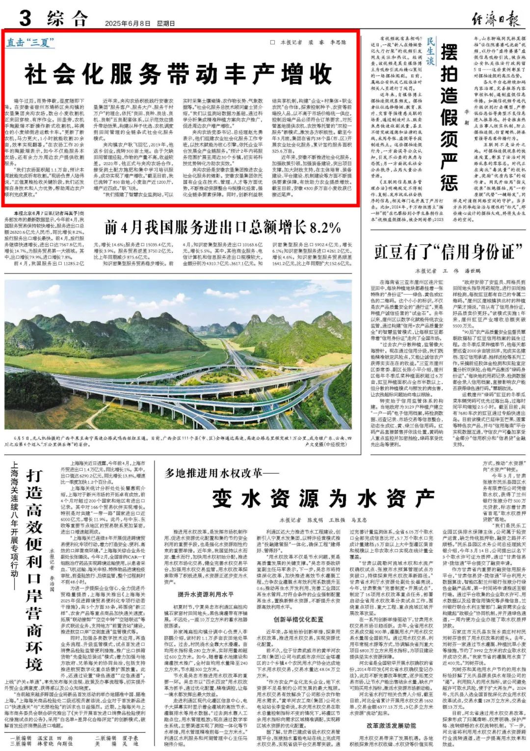 (本報道刊載于6月8日《經(jīng)濟日報》3版頭條,原文名稱《社會化服務帶動豐產(chǎn)增收》)