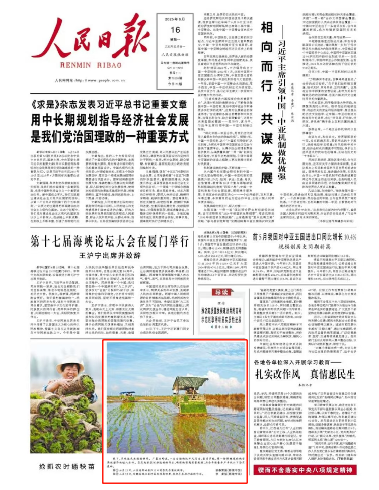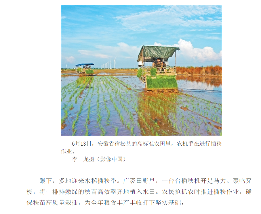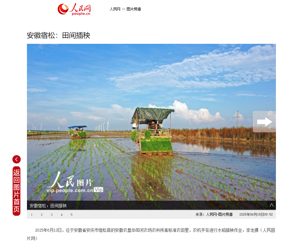 6月15日《人民網(wǎng)》安徽農(nóng)墾集團(tuán)和6月16日《人民日?qǐng)?bào)》首版相繼報(bào)道了安徽農(nóng)墾華陽(yáng)河農(nóng)場(chǎng)夏種機(jī)插秧情況。