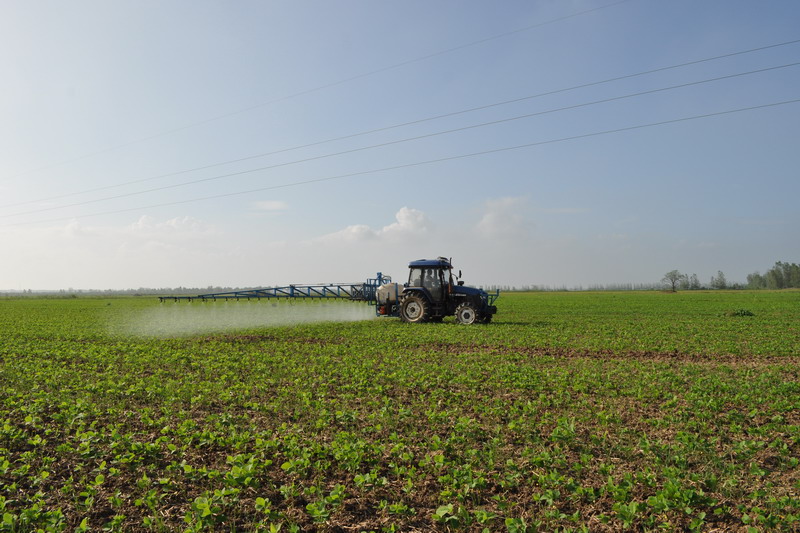 79,在安徽潘村湖農場,大馬力拖拉機正在田間進行除草作業。(安徽日報201471102版,楊登宏攝)
