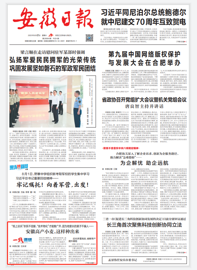 此稿發表于8月2日《安徽日報》頭版,記者汪永安。