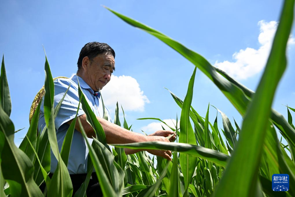 7月20日,徐淙祥在阜陽市太和縣舊縣鎮(zhèn)的田間察看玉米生長情況。