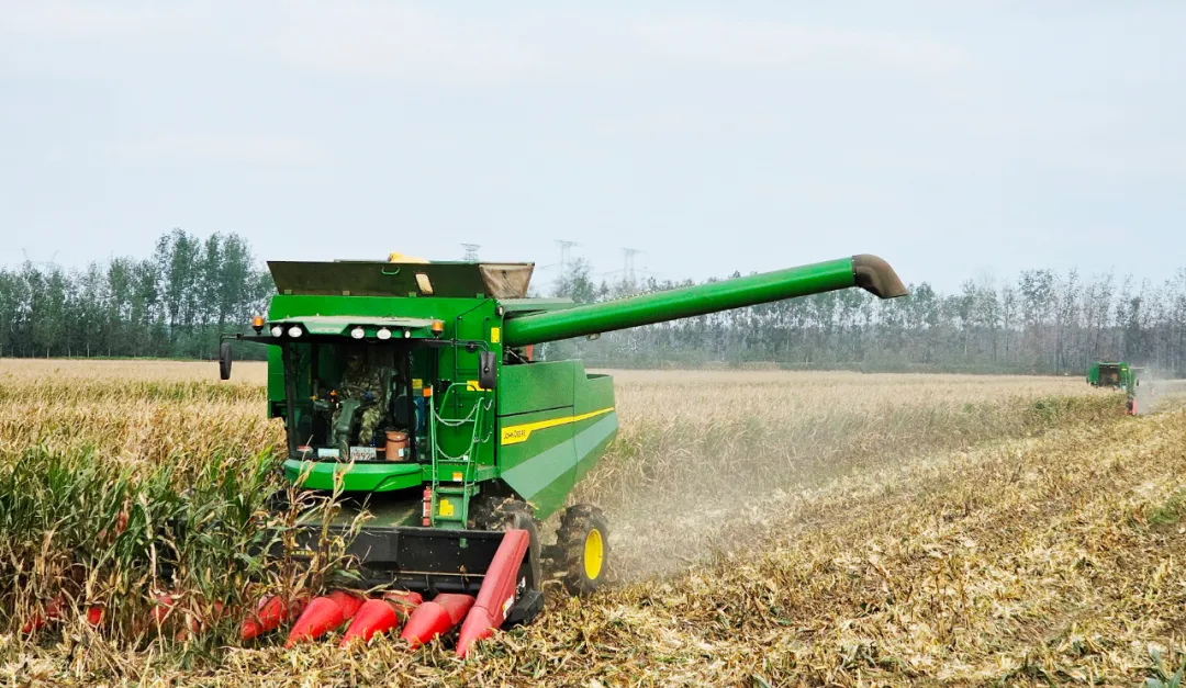 在安徽省宿州市埇橋區(qū)安徽農(nóng)墾集團(tuán)夾溝農(nóng)場公司的玉米水肥一體化示范基地里,大型聯(lián)合收割機正在收割玉米。基地負(fù)責(zé)人蔡中利捧著飽滿的玉米穗,向記者算起增收賬:“過去澆地靠漫灌、施肥憑經(jīng)驗,現(xiàn)在手機點一點,水肥直接送到玉米根上,一畝地還多收兩麻袋!”