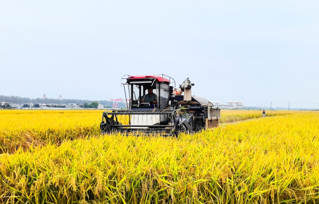 皖河農場水稻標準化機械收割。(徐麗燕 攝)