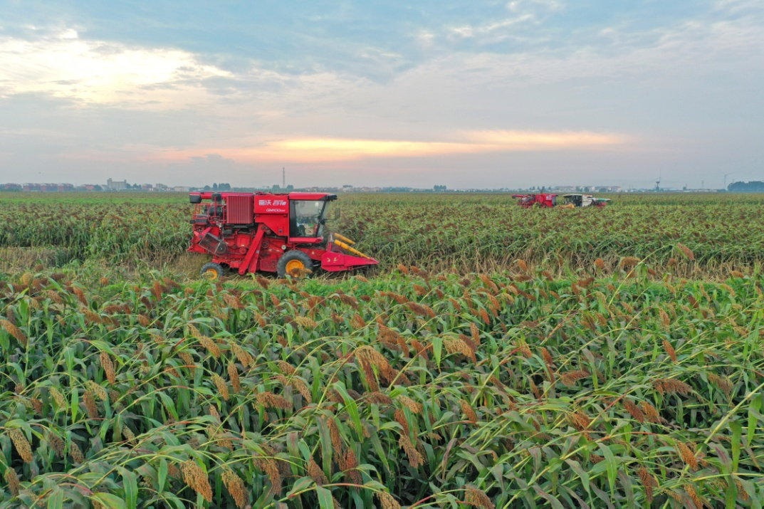 華陽河農場高粱收割作業。(李龍 攝)