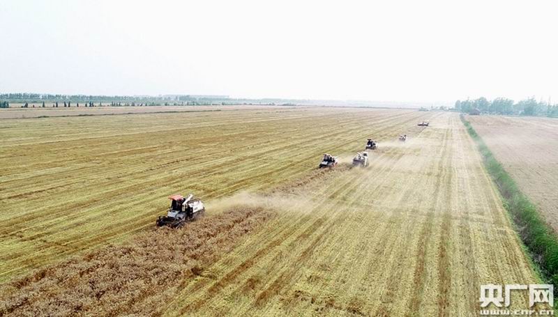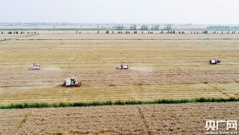 央廣網(wǎng)合肥528消息:麥?zhǔn)赵诩矗不帐∞r(nóng)墾種植的34萬畝小麥迎來了又一個(gè)豐收之年。其中沿江江南非主產(chǎn)區(qū)農(nóng)場(chǎng)種植的10萬畝小麥目前已收割完畢,沿淮農(nóng)場(chǎng)也即將開鐮。圖為沿江墾區(qū)華陽河、皖河農(nóng)場(chǎng)麥?zhǔn)宅F(xiàn)場(chǎng)。(李龍 徐麗燕攝)