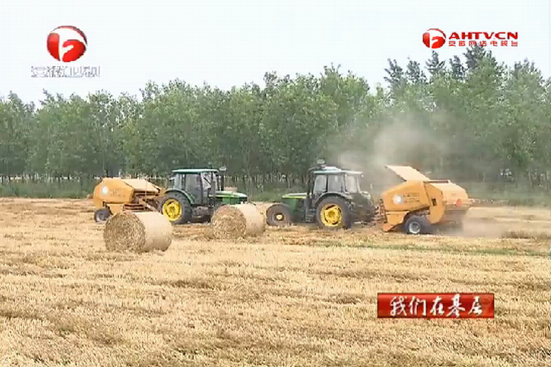 安徽臺記者鄭志:“我身旁的大型機械正在對地里的小麥秸稈進行打捆處理,打捆之后,大家可以看到,就是我身旁這個結結實實的大家伙,這為小麥秸稈下一步的綜合利用創造了條件”。