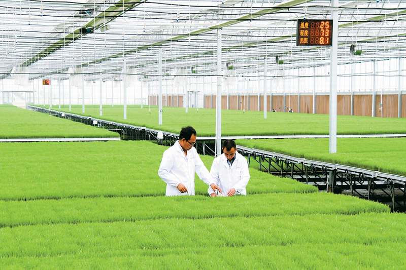 省農墾龍亢農場牢記囑托,搶抓機遇交出現代農業嶄新答卷運用農業物聯網技術,建成智能溫室大棚5000平方米,可隨時調節光、溫、水,專門承擔水稻、特種瓜果蔬菜的培苗。圖為農技人員正在為水稻秧苗做體檢(習近平總書記視察安徽兩周年特別報道,安徽日報201842506-07版,李峰攝)