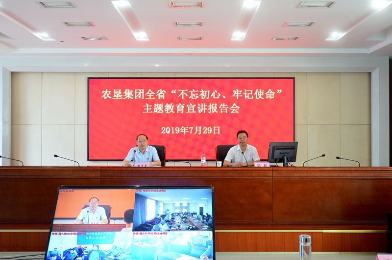 7月29日上午,全省“不忘初心、牢記使命”主題教育暨“舉旗幟•送理論”宣講走進墾區。安徽農業大學人文社科學院黨委書記、教授孫超作題為《牢記黨的根本宗旨 堅定共產主義理想信念》專題報告。宣講報告會由集團公司黨委書記、董事長詹先豪主持,集團總部全體工作人員現場聽課,二級公司中層以上管理人員同步視頻觀看。