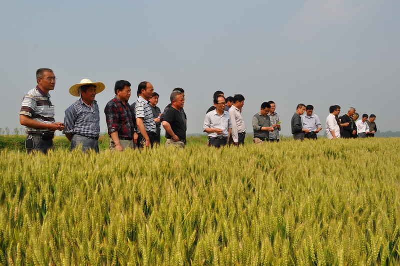 520,滁州市種子管理站專家和種子經(jīng)銷商正在安徽省最大的小麥原良種繁育基地——潘村湖農(nóng)場察看小麥長勢。進(jìn)入5月中旬以來,各地專家、種子經(jīng)銷商和種田大戶紛紛來到農(nóng)場實地觀摩小麥種子田生長情況,并根據(jù)小麥形狀、純度、抗性等現(xiàn)場選訂中意的麥種。(安徽日報2014522A1版,楊登宏攝)