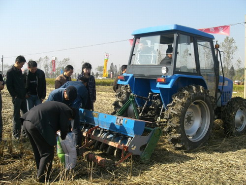 11月7日由宣城市農(nóng)委組織的轄區(qū)各市、區(qū)、縣的分管領(lǐng)導(dǎo)、農(nóng)技、農(nóng)機(jī)職能部門,部分鄉(xiāng)鎮(zhèn)的主要領(lǐng)導(dǎo)及農(nóng)業(yè)專家參加的水稻、小麥全程機(jī)械化現(xiàn)場會(huì)在安徽農(nóng)墾青草湖農(nóng)場召開。領(lǐng)導(dǎo)及專家們參觀了水稻機(jī)收、小麥機(jī)播、開溝的現(xiàn)場。農(nóng)場就農(nóng)場小麥實(shí)行統(tǒng)一布局,統(tǒng)一供種、統(tǒng)一產(chǎn)品回收、統(tǒng)一技術(shù)栽培、統(tǒng)一管理措施等相關(guān)政策和農(nóng)場近幾年取得小麥400公斤高產(chǎn)的具體做法,在交流座談大會(huì)上作了典型發(fā)言。與會(huì)者對該場水稻、小麥實(shí)施全程機(jī)械化給予了充分的肯定,對農(nóng)場的新農(nóng)村建設(shè)、農(nóng)業(yè)產(chǎn)業(yè)化的戰(zhàn)略布置和調(diào)整、企業(yè)的發(fā)展和示范的帶動(dòng)作用,給予高度的評價(jià)。