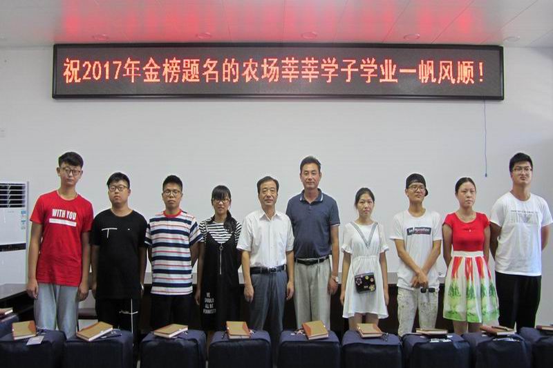 開學季在即。823,大壙圩農場社區開展大學新生關愛活動,贈予今年考上大學本科的11名職工子女行李箱、筆記本、筆等學習生活用品,讓他們充分感受到農場黨委的關愛關懷。