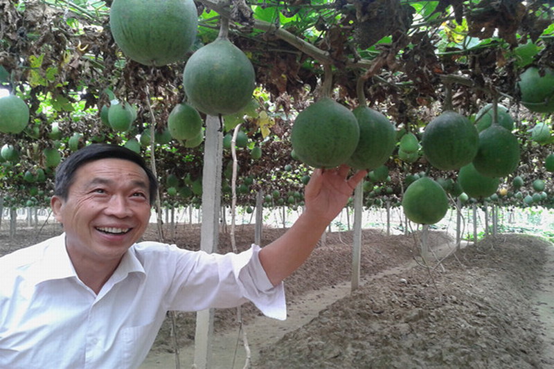 安徽經濟新聞網1015日訊:近年來,安徽農墾華陽河農場大力發展瓜蔞等高效農業成效顯著,并積極推廣滴灌等先進適用技術,逐漸形成了以高效農業為主導的產業,為農業增效、職工增收提供了保證。圖為職工種植戶看著自家地里長勢良好的瓜蔞眉開眼笑。(程來保攝)