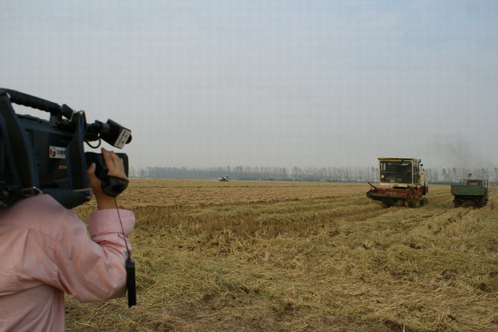 安徽電視臺:實地采訪大壙圩農場水稻豐收場景和倮倮米業質量追溯生產